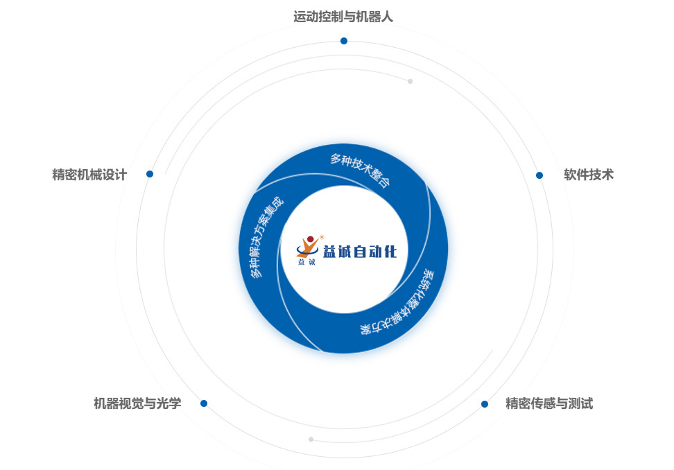 益誠(chéng)自動(dòng)化成立于2007年,已通過ISO9001:2015質(zhì)量管理體系認(rèn)證,是一家高新技術(shù)企業(yè),東莞市工程技術(shù)研究中心,設(shè)有一個(gè)博士工作站??偣疚挥趶V東省東莞市,在沈陽、蘇州、印度尼西亞設(shè)有分公司,在香港特別行政區(qū)和德國(guó)設(shè)有辦事處。并與2021年在浙江、韶關(guān)自建智能制造工業(yè)科技園。益誠(chéng)自成立以來專業(yè)從事非標(biāo)自動(dòng)化生產(chǎn)設(shè)備、視覺定位與檢測(cè)、工業(yè)多軸機(jī)器人的研發(fā)、制造與服務(wù),以及為生產(chǎn)企業(yè)提供智能制造整體解決方案。益誠(chéng)擁有一支由100余名專業(yè)工程開發(fā)人員組成的研發(fā)團(tuán)隊(duì)。在汽車配件、電子電器開關(guān)插座、精密微型馬達(dá)、散熱風(fēng)扇、機(jī)械手等生產(chǎn)領(lǐng)域,為各生產(chǎn)企業(yè)提供多元化的自動(dòng)化解決方案。為使益誠(chéng)的研發(fā)能力能得到持續(xù)提升,為市場(chǎng)提供更優(yōu)質(zhì)的服務(wù),益誠(chéng)與國(guó)內(nèi)多家高等院校建立了”產(chǎn)、學(xué)、研“合作關(guān)系,并與德國(guó)著名的自動(dòng)化設(shè)備制造商”SUSO Automation“結(jié)成戰(zhàn)略合作伙伴。